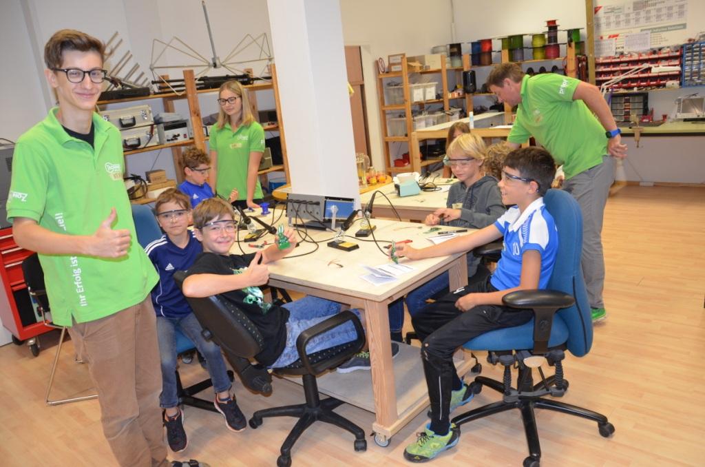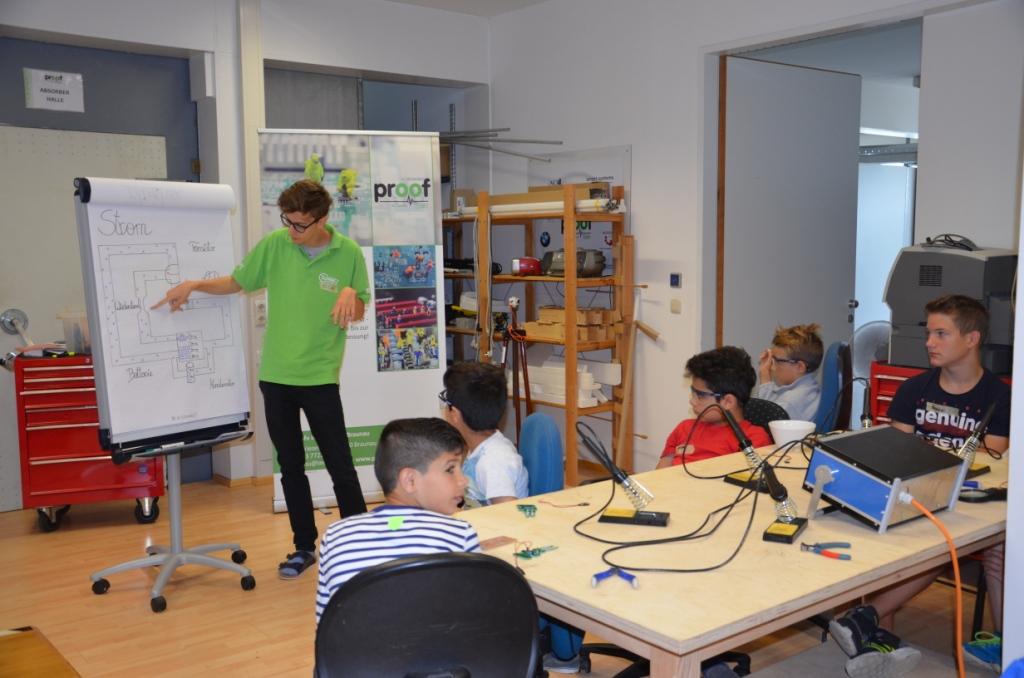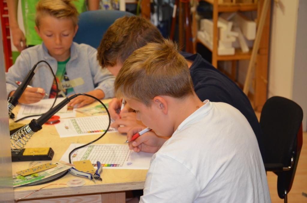 Zum Schluss wurde den Teilnehmern noch erklärt, wie man die Größe eines Widerstandes berechnet und nach ein paar Versuchen durften sie ihr Können im Rahmen eines kleinen Wettbewerbs unter Beweis stellen.