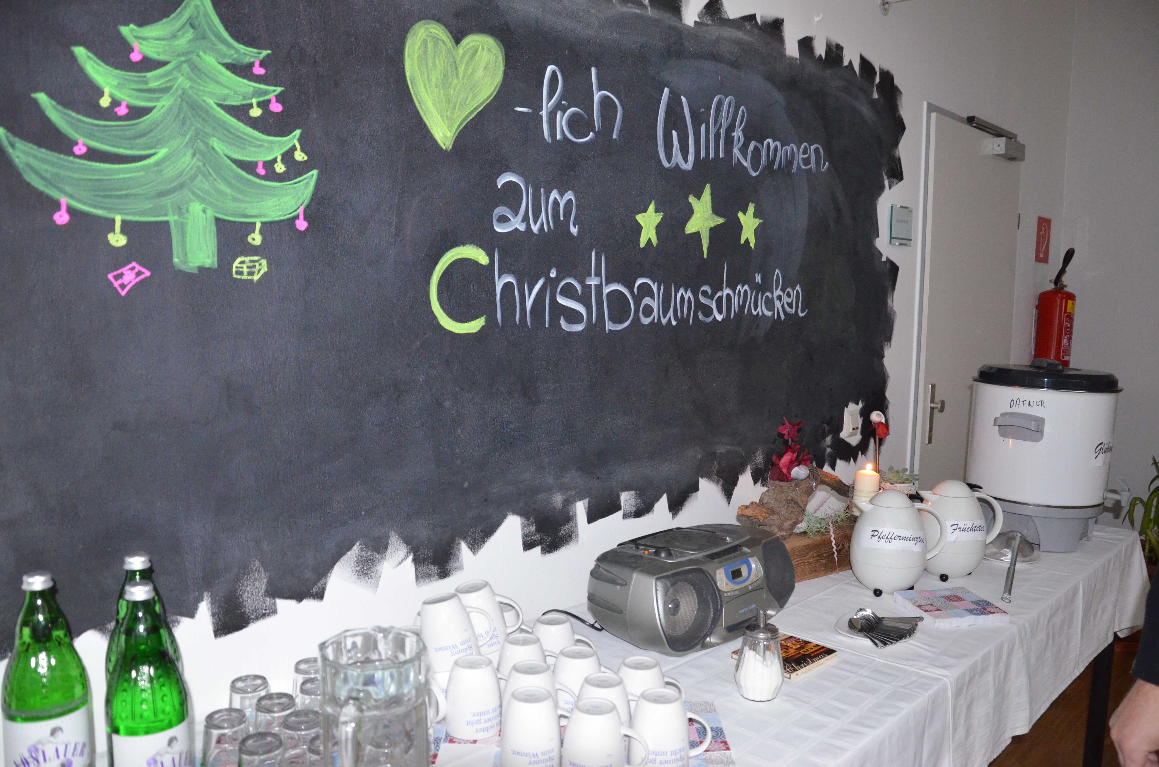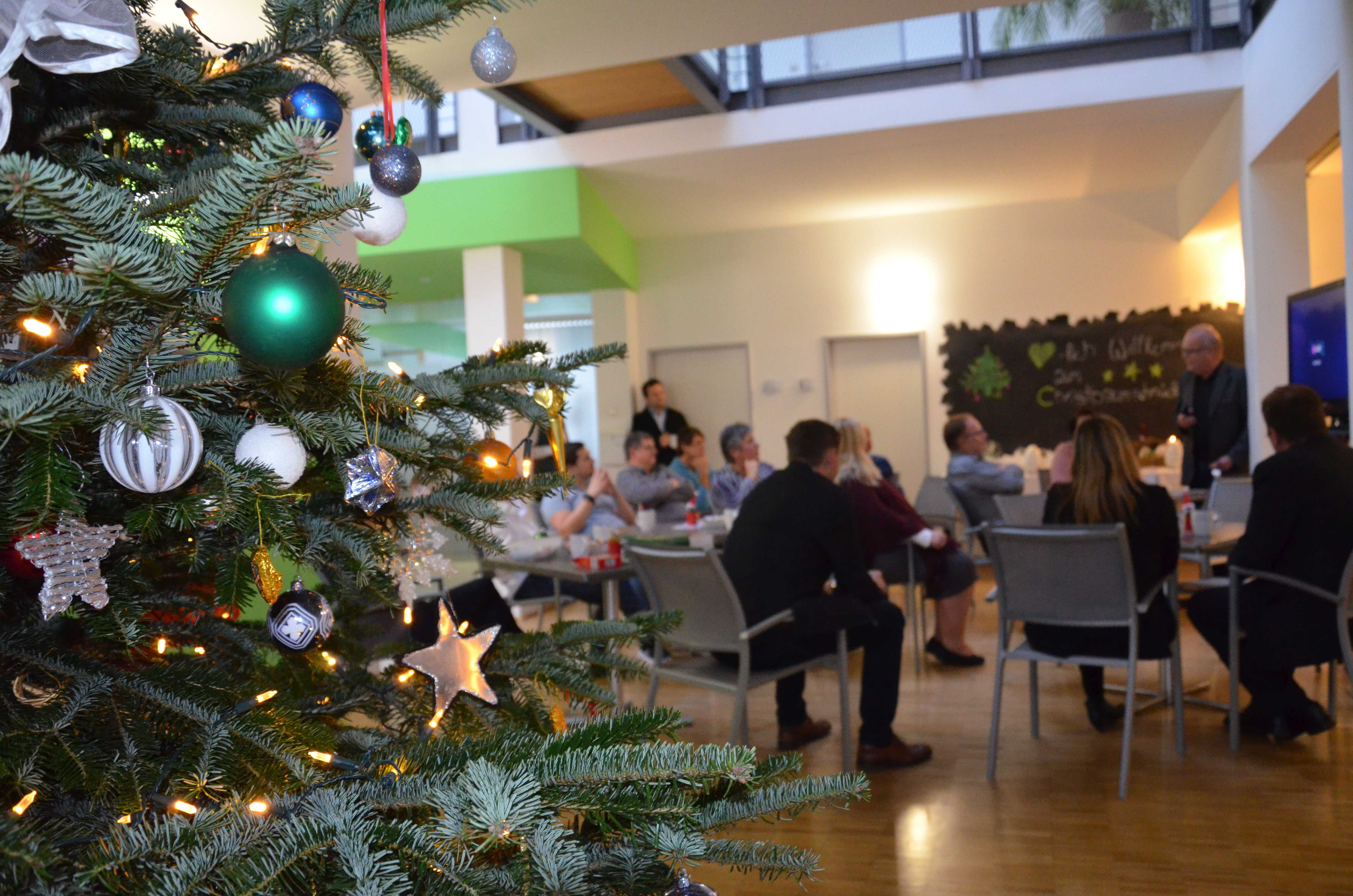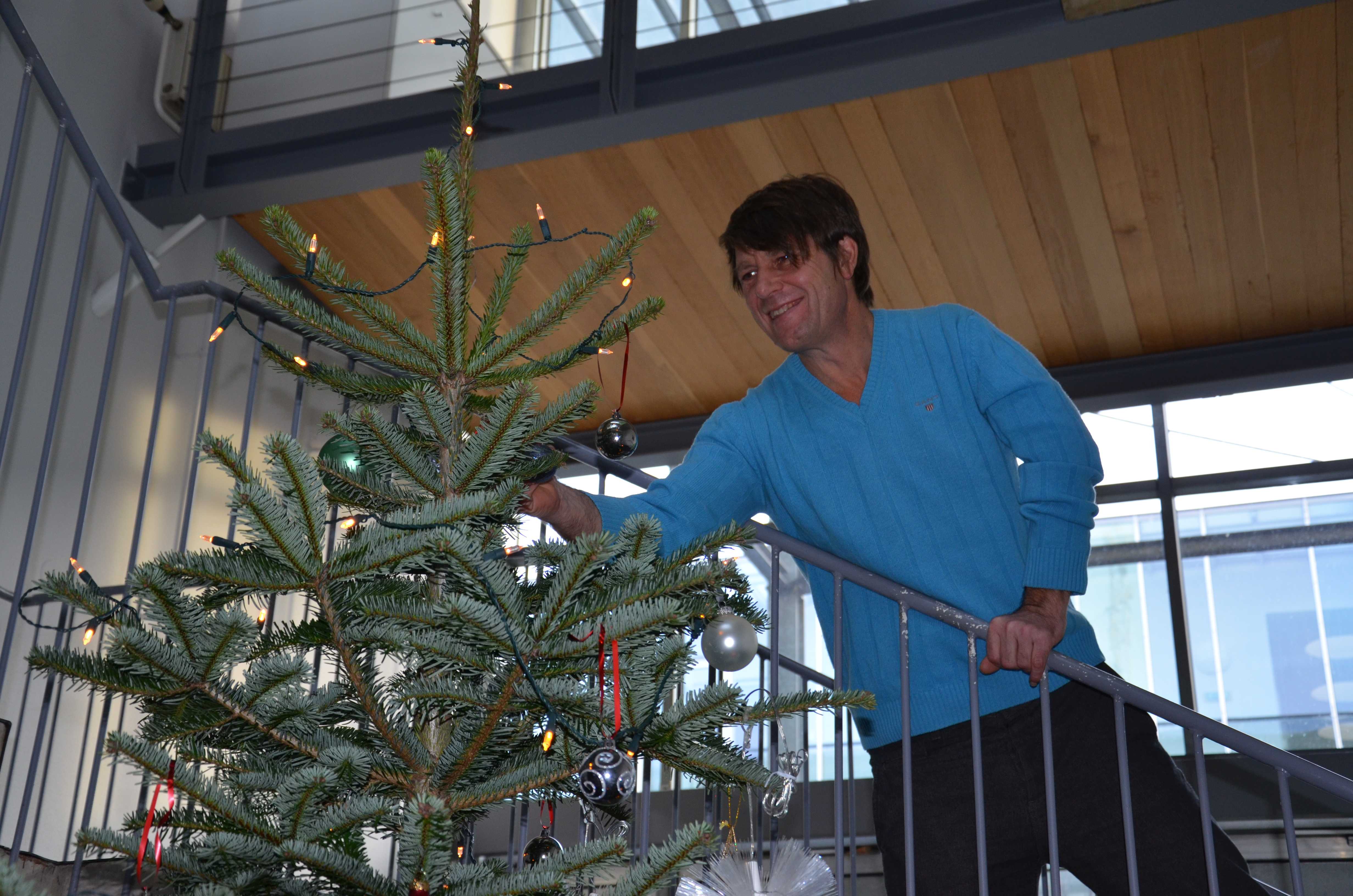 Mit Weihnachtsmusik und gemeinsamen Schmücken, funkelte der Techno-Z Christbaum in wenigen Minuten.