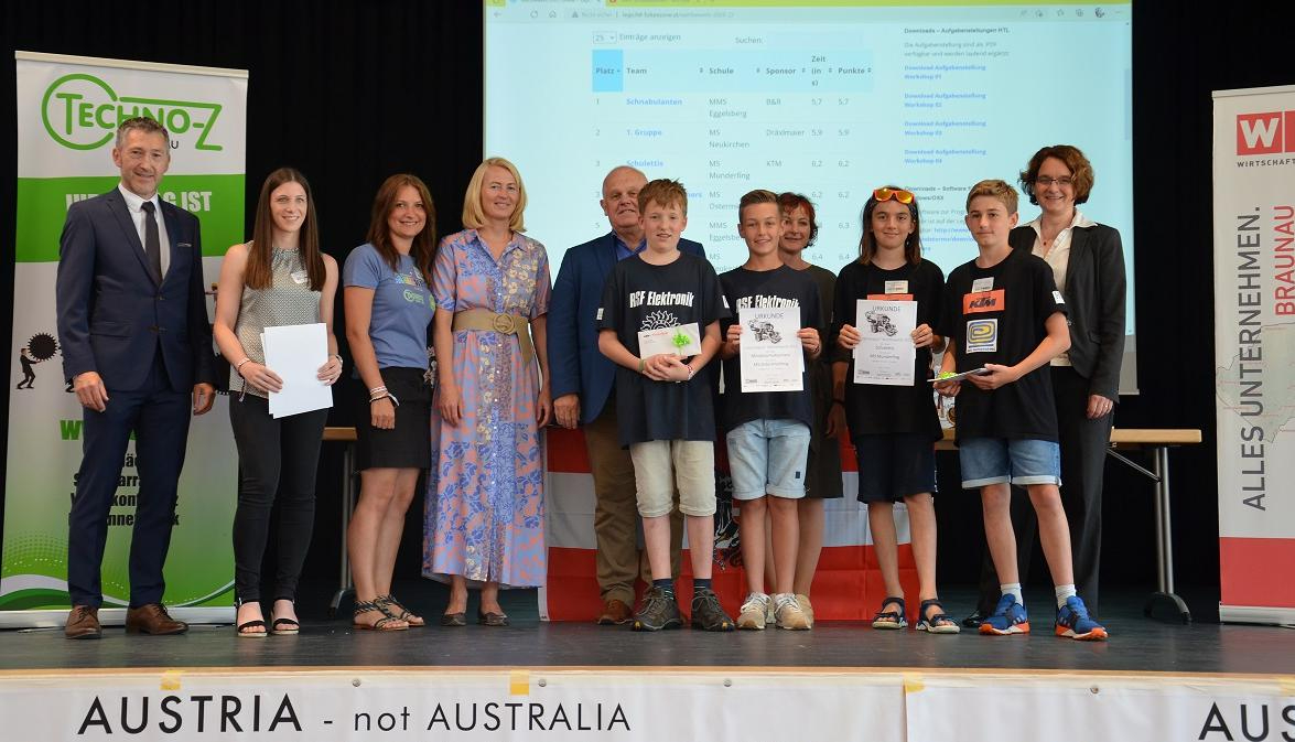 Den 3. Platz teilen sich das Team „Schulettis“ aus der Mittelschule Munderfing und das Team „MindstormRunners“ aus der Mittelschule Ostermiething. Sie gewannen einen Familienausflug in die KTM Motohall.