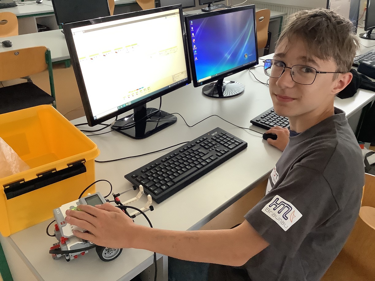 Der Bezirkswettbewerb der Lego League district braunau fand auch heuer wieder Online statt. Die Schülerinnen und Schüler konnten in einem selbst aufgenommenen Video ihr Können im Roboterbau und Programmieren präsentieren. Unter dem Motto „Speedchallenge“ musste der Roboter Schnellkraftübungen meistern, um sich fit zu halten. Dabei musste der Roboter eine Hantel hochheben und sie schnellstmöglich nach Umgehung des Hindernisses auf der Zielposition ablegen.