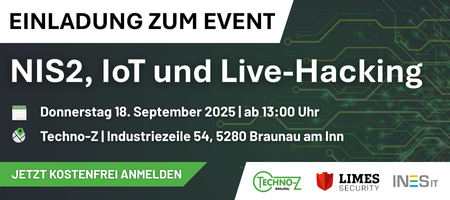 Einladung zur kostenlosen Veranstaltung am 18. September: IoT-Sicherheit, NIS2 & Live Hacking im Techno-Z in Braunau!